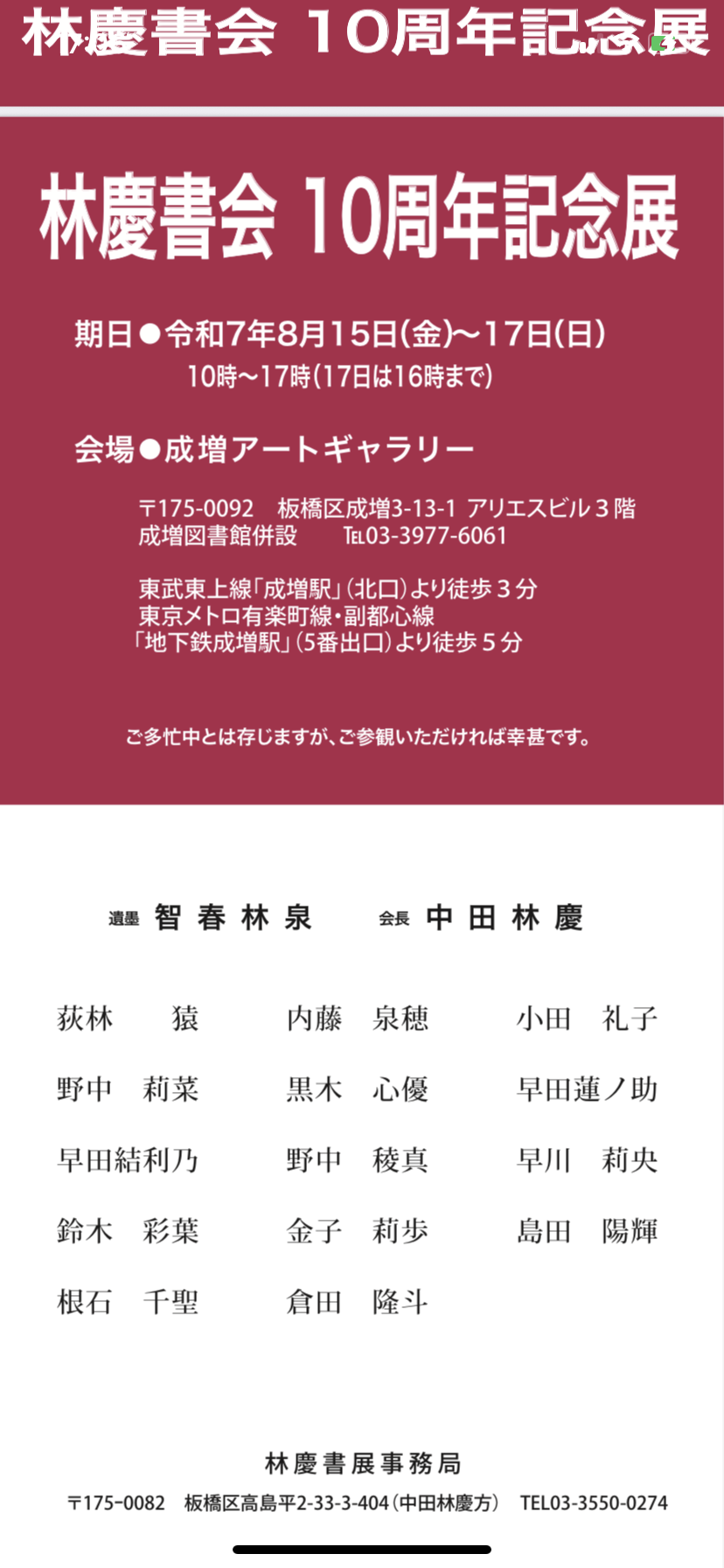 林慶書会10周年記念展覧会